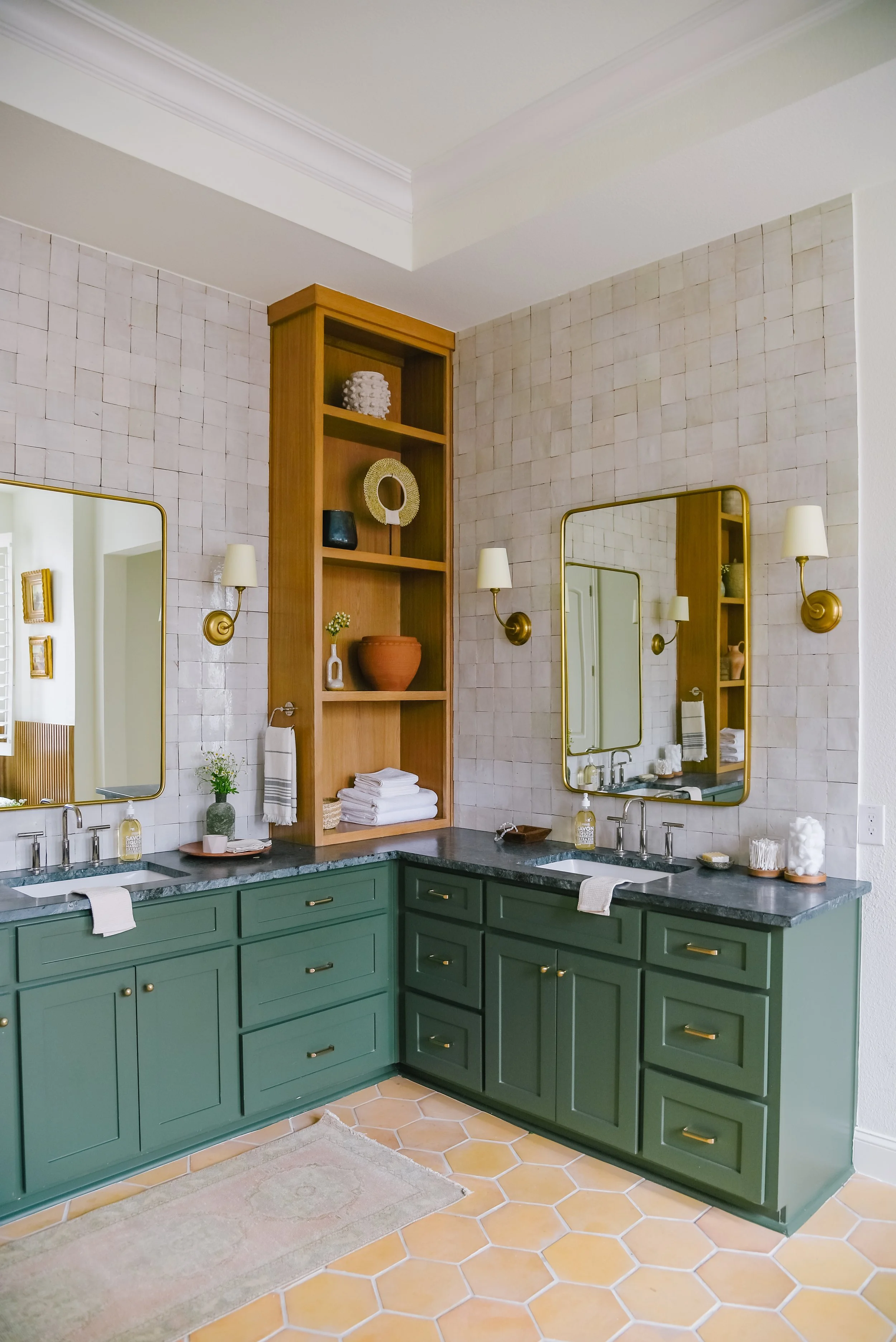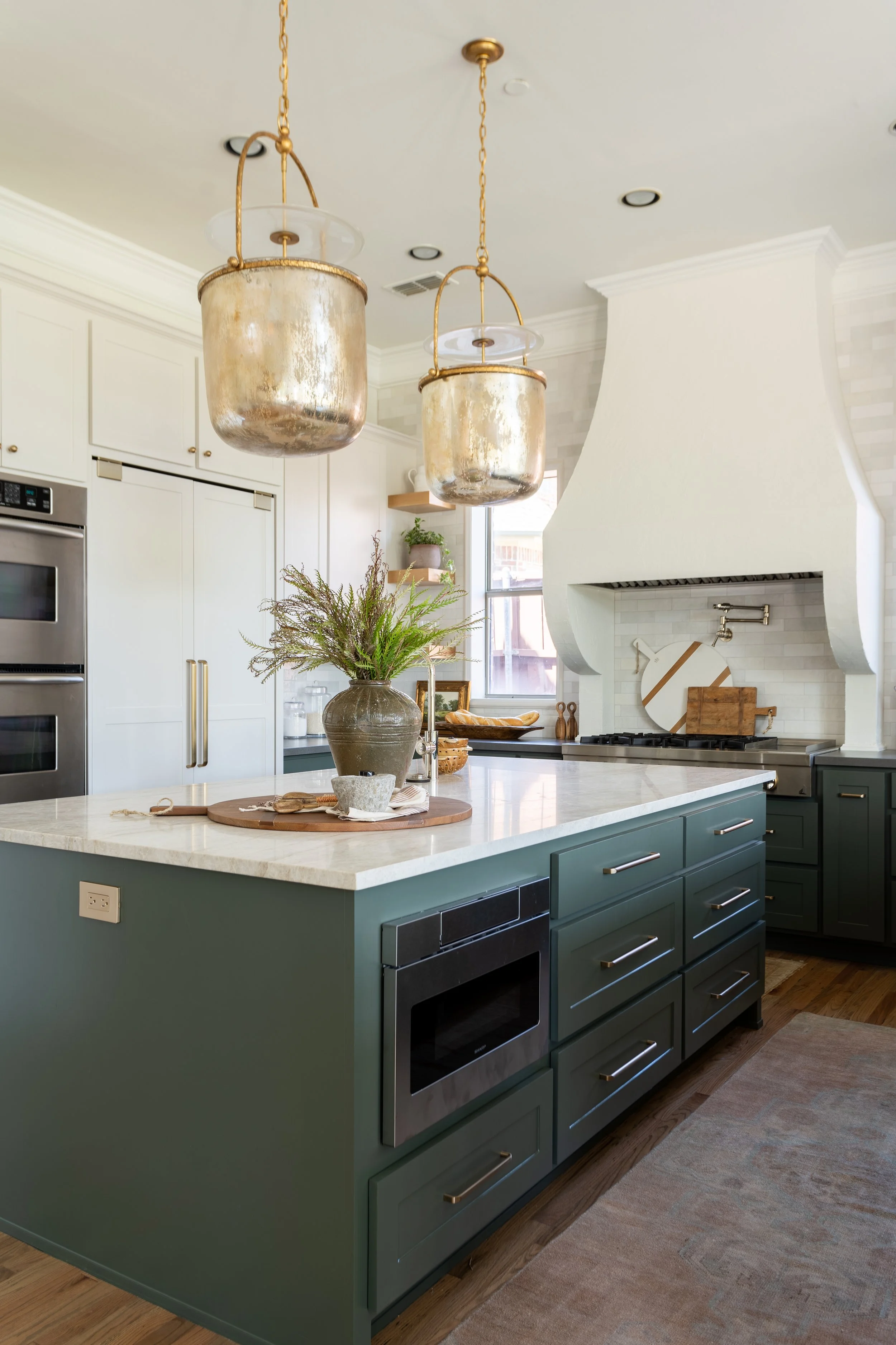 Speaking of green, you call know we’re big fans of green when it comes to design - after all, it’s pretty much a neutral for us these days! Whether we’re adding a pop of color to a kitchen with green cabinetry or are making a statement in a living room with a velvet green sofa, there’s so many ways we love to incorporate this beautiful hue. Here’s a few pretty green spaces from a few of our projects!