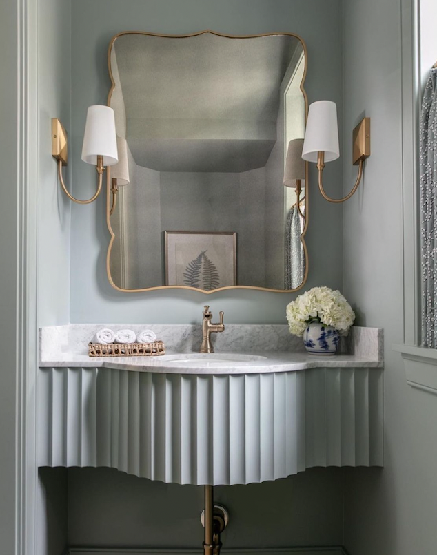 Another great space for incorporating fluted details is in the bathroom. Here, we love adding this detail to a vanity or sprucing up the walls with a fluted wall treatment - as seen in our Cedarwood Project Primary Bath. By incorporating this detail into your bathroom, not only will it add texture to the space, but it will elevate the overall design giving it a custom look. We have several projects currently underway that carry this detail into the bathroom and we can’t wait to show you how amazing it looks! Until then, check out the below photo
