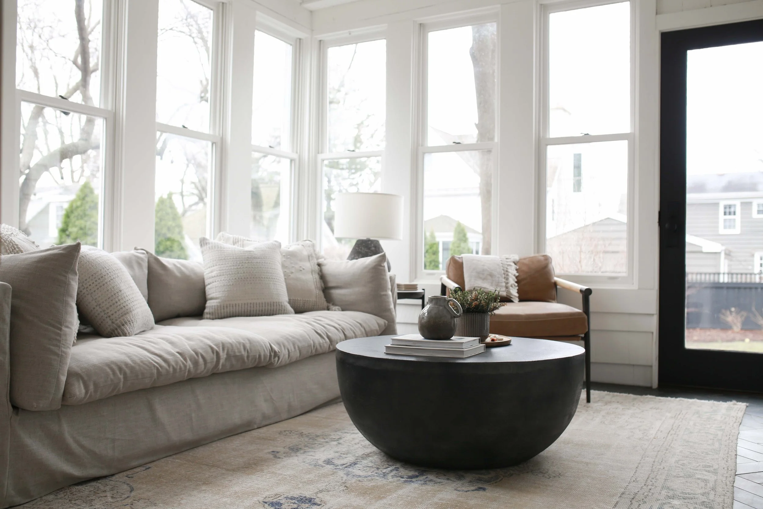 Hello Windy City! We’re bringing you into this sunroom retreat we recently redesigned for Ashley Murphey, Co-Founder of Neat Method in Chicago. We wanted to incorporate warm soft tones and textures to create an inviting space that’s perfect for the whole family to come together.