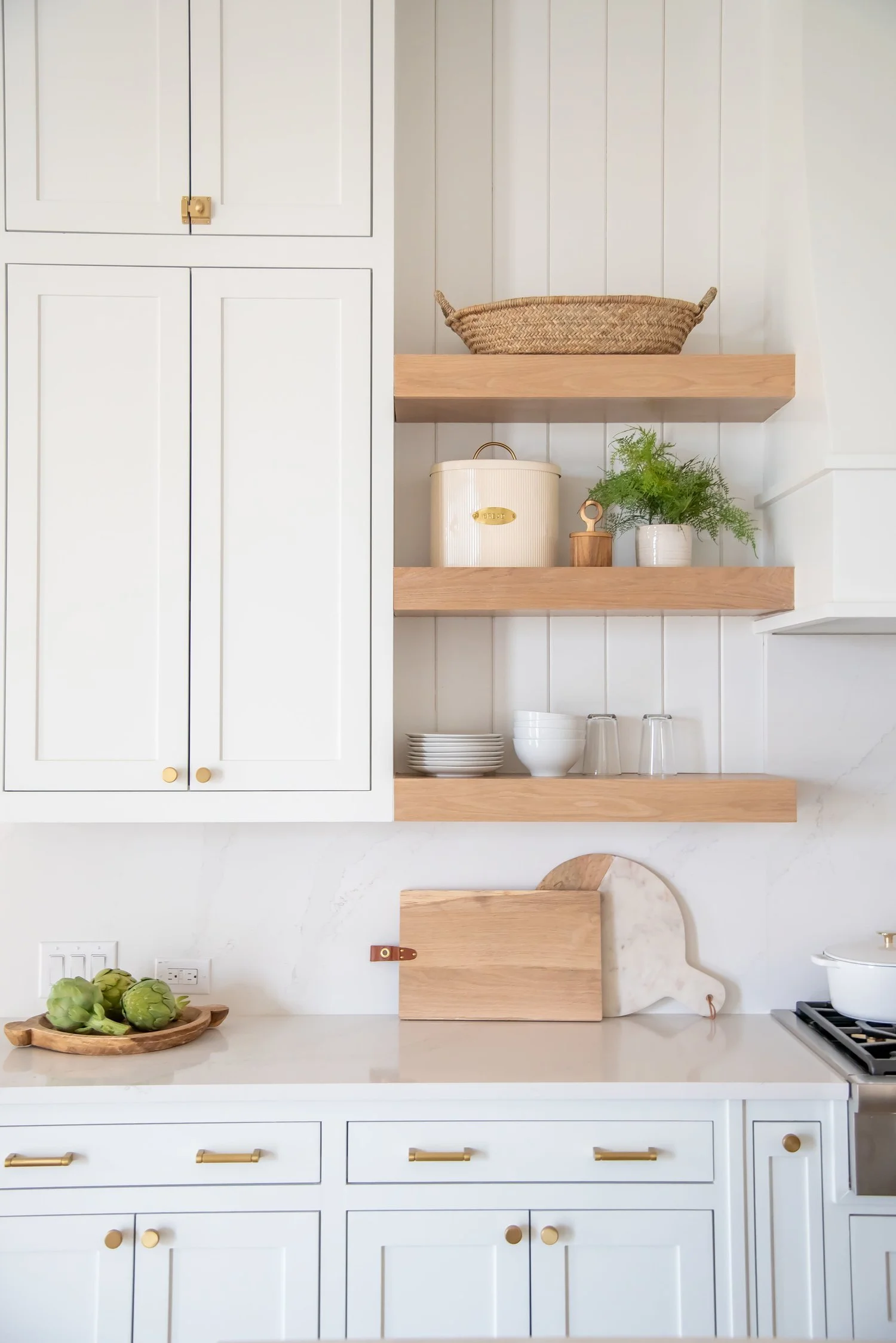 When choosing accessories, we wanted to be intentional in telling the story of the home. We loved this vintage rug that really brought in farmhouse vibes, and these baskets we used to style the shelves.