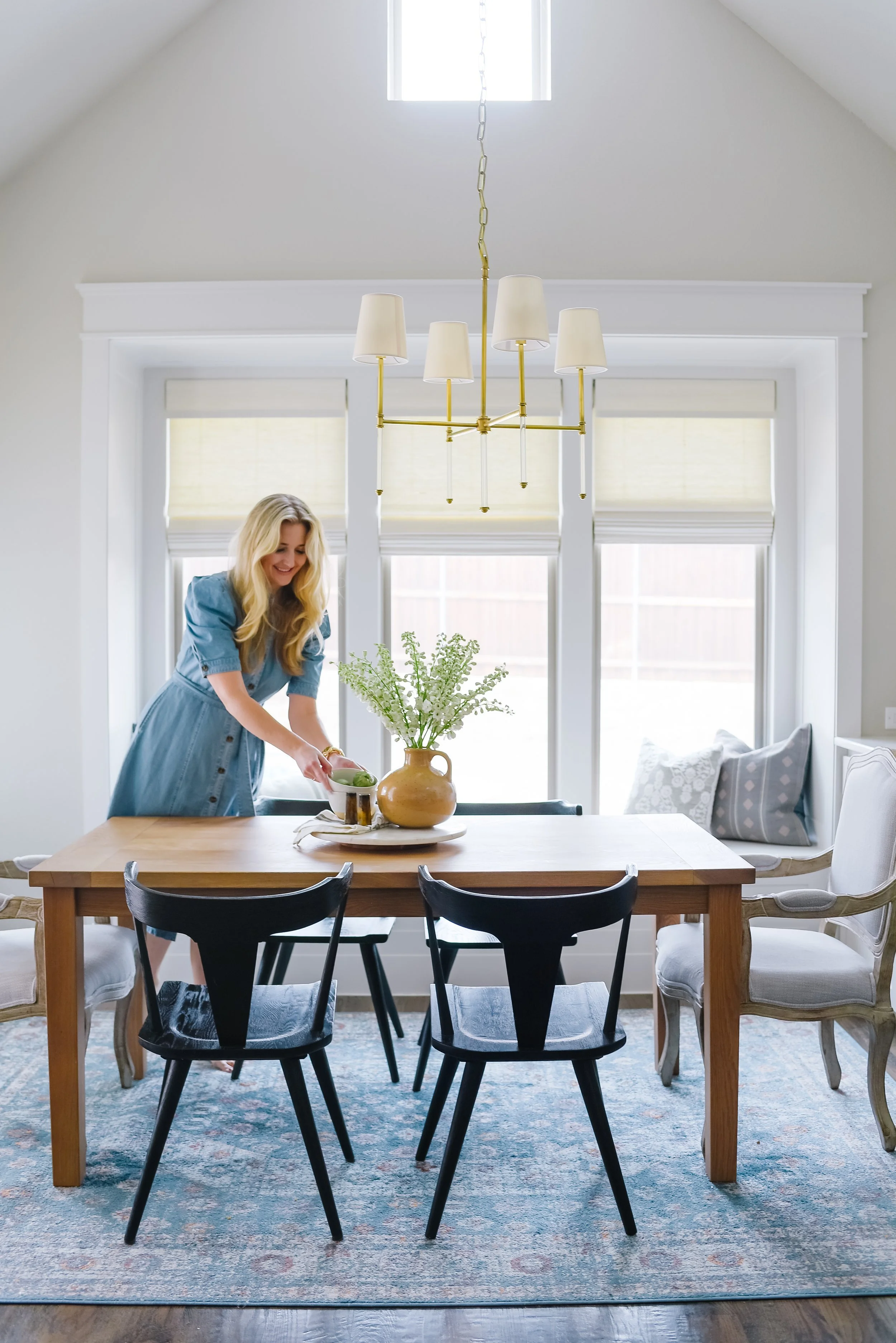 Coming into the home, we love the open concept, pitched ceilings, and all the beautiful natural light streaming in. We were able to add to the beauty with finishing touches of furnishings and accessories in this home.