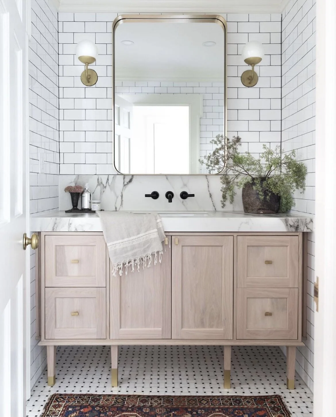 A lot of times the mirrors that you have to choose from with your builder are dated and overpriced. Instead of investing in the options they give you, bring in your own intentional mirrors to your bathrooms. Also, insider tip - always say no to any glue-down mirrors they offer you! These have a tendency to rip the drywall off, which will cause costly repairs. We love helping our clients choose intentional mirrors that have a designer look, while still being budget-friendly. We’ve linked some of our favorite mirrors below.